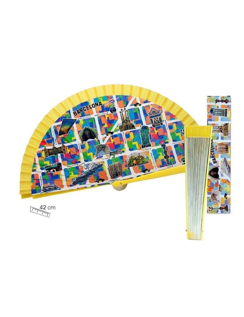 Ventall de cotó sobre fusta amb un colorit disseny inspirat en mapes de Barcelona.