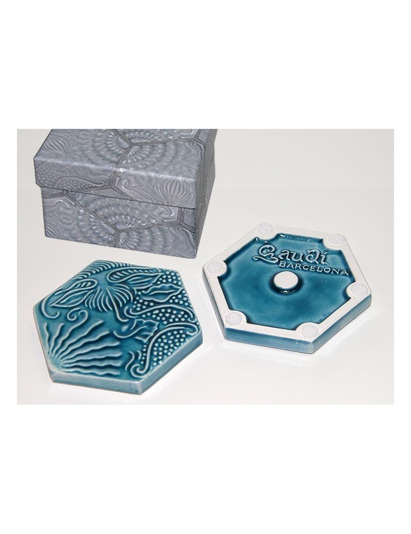 Pràctics posagots inspirats en la rajola hexagonal, amb motius marins, que Antoni Gaudí va dissenyar per la casa de Batlló (1904-1906), encara que finalment va ser instalada a la casa Milá (1906-1910).