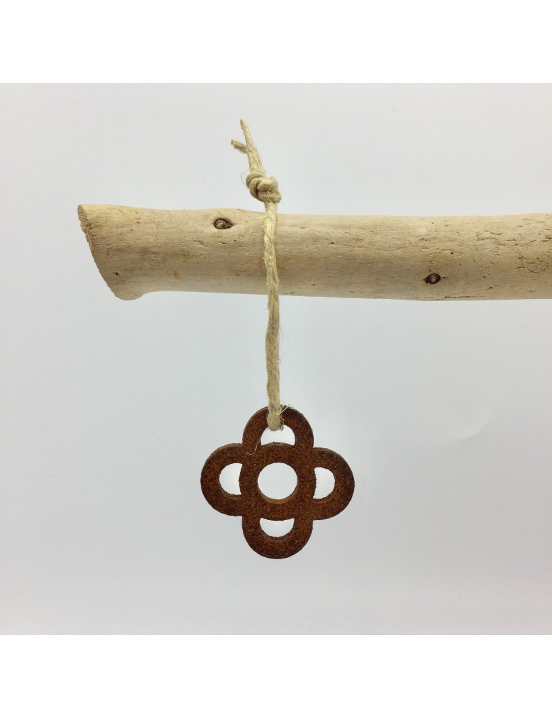 Reproduction in rusty iron of the well-known gray panot de flor hydraulic cement tile, which spread across Barcelona's roadways when the "Eixample" was developed. It can serve as a decoration or a keychain.