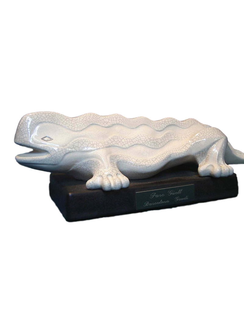 Made in white ceramics and inspired in Gaudi's Park Guell Lizard.