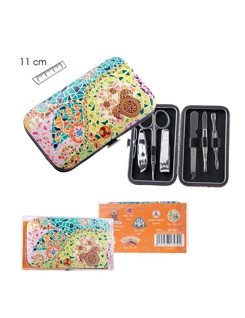 Manicure set with a colorful design inspired by the decorative elements of the architect Antoni Gaudi.