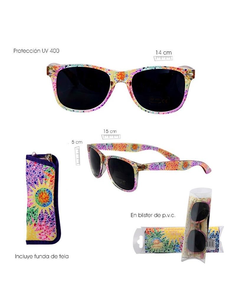 Sunglasses decorated with Gaudí motifs. UV 400 protection. Includes a fabric case decorated with the same design.