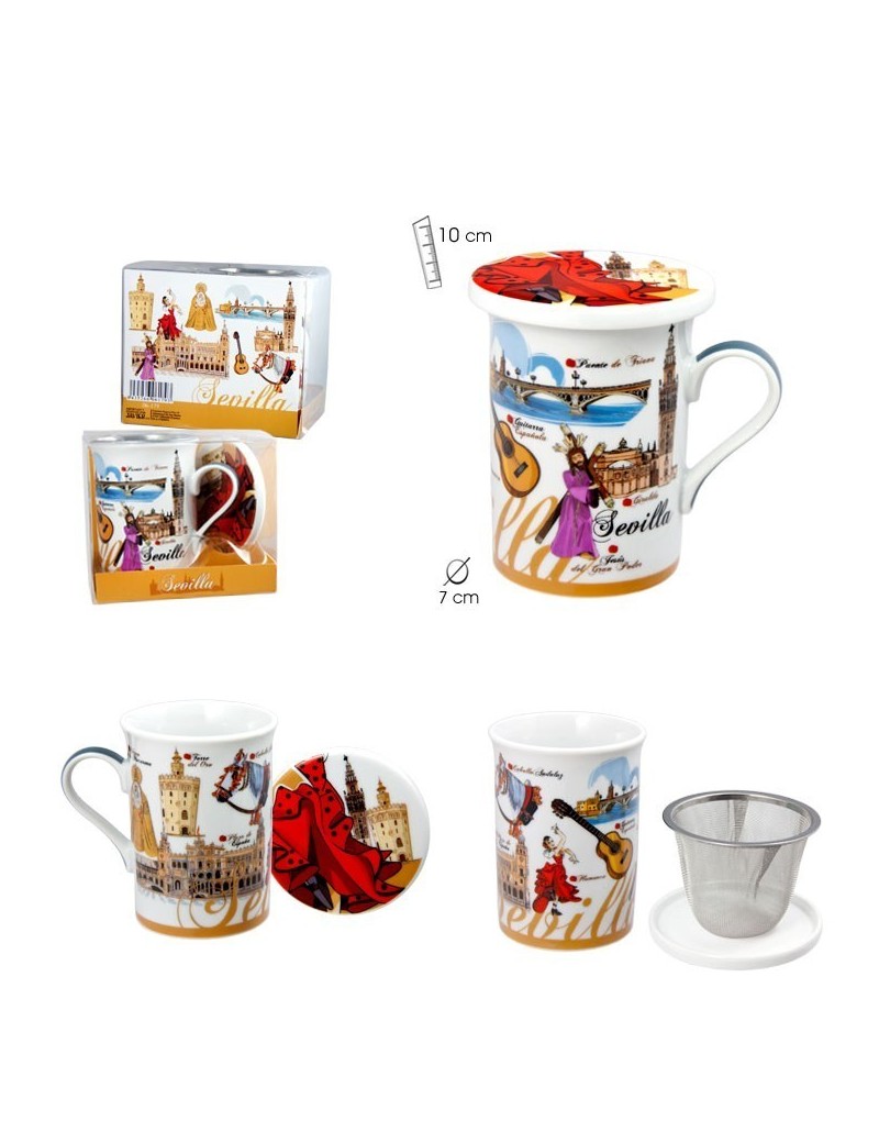 Mug for tea or coffee, with motifs typical of Seville, such as flamenco, horses, the Giralda ...