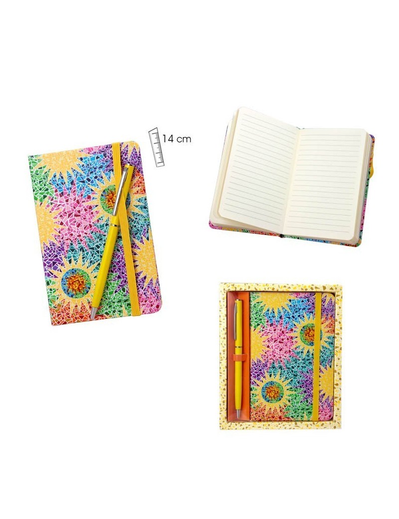 Notebook with pen, with a design inspired in decorative elements created by Gaudí.