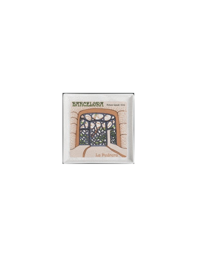 Square glazed ceramic tray in full color.