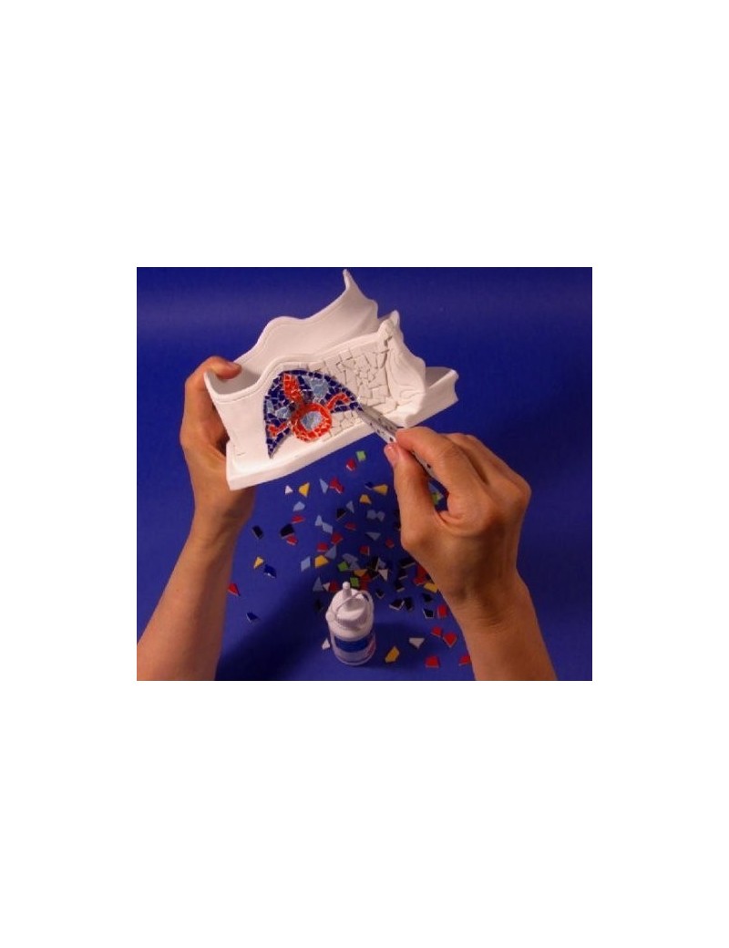 Kit de montaje del famoso banco del Parque Güell de Gaudí. Incluye la escultura de resina, baldosas de colores en cerámica esmaltada y cola.