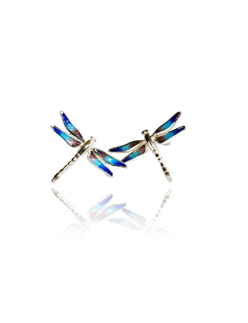 Boucles d'oreilles libellule bleu émaillé avec le feu .