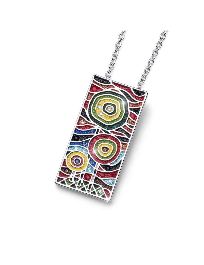 Collier plaqué rhoduim avec un pendentif décoré avec le Trencadís de gaudí, avec des cristaux multicolor. Chaîne avec fermeture sécurisée.