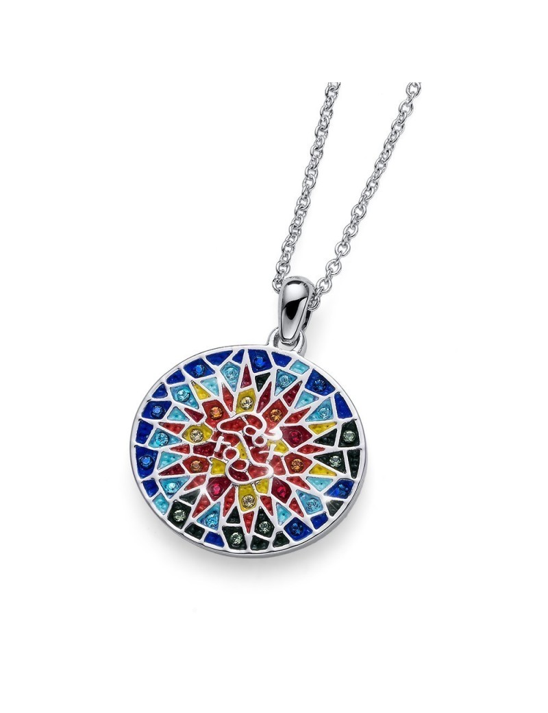 Collier plaqué rhoduim avec un pendentif décoré avec le Trencadís de gaudí, avec des cristaux multicolor. Chaîne avec fermeture sécurisée.